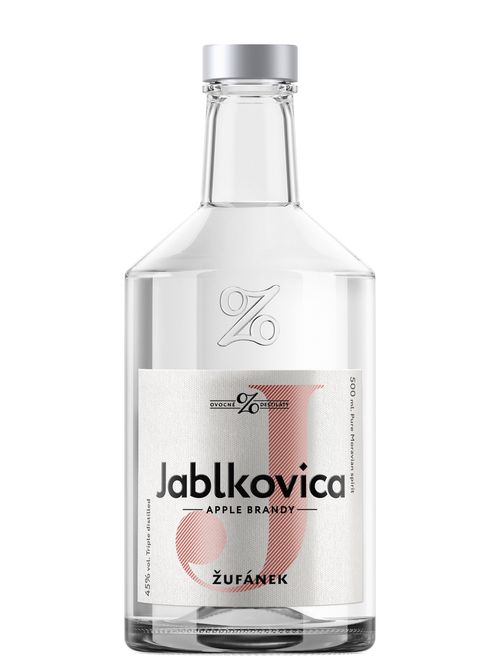 Jablkovica 45% Dobře vydestilovaná jablkovice je ušlechtilá pálenka s charakteristickou vůní a převelice jemnou chutí. Jablkovice to vždycky měla těžké. Spousta lidí ji považuje za symbol levné pálenky. A proto trvalo dlouhých 17 let, než se ji v lihovaru Žufánek rozhoupali vydestilovat. V roce 2017 vzniklo jen pár set litrů Žufánkovic první jablkovice, kterou z půlky dali do dubových sudů pro pozdější využití a půlku stočili v čiré podobě. Na tu sudovou ještě musíme počkat, ale čirá klasika plná sladké vůně a jemné chutě je k dispozici již teď.